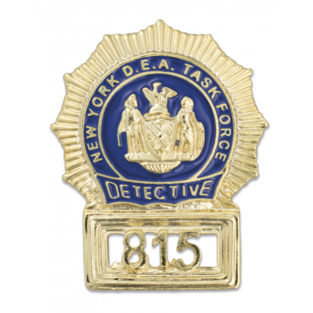 Placa insignia de un agente de policía de New York miembro del REDRUM (group of the New York Drug Enforcement Task Force) compuesto por agentes de la DEA, detectives de la policía de New York, e investigadores de la policía "del estado" de New York. La misión de la DEA TASK FORCE, es promover, cooperar y coordinar los esfurzos contra el narcotrafico.